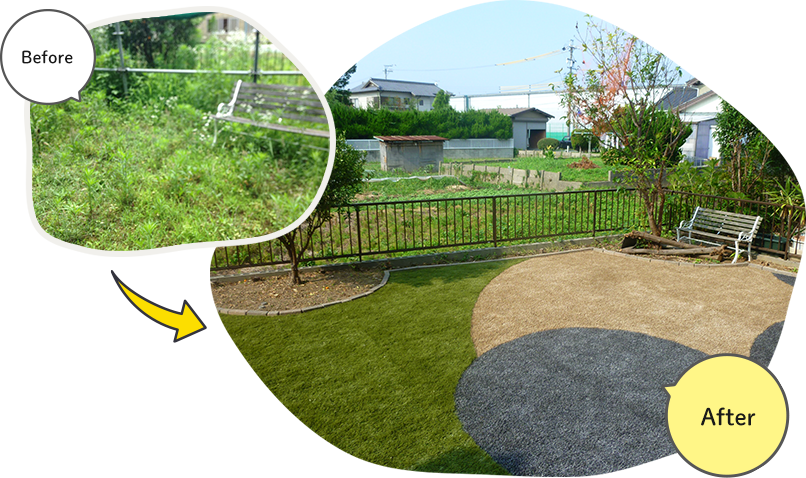 人工芝の設置・芝刈り機のメンテナンス等について当社サービスを