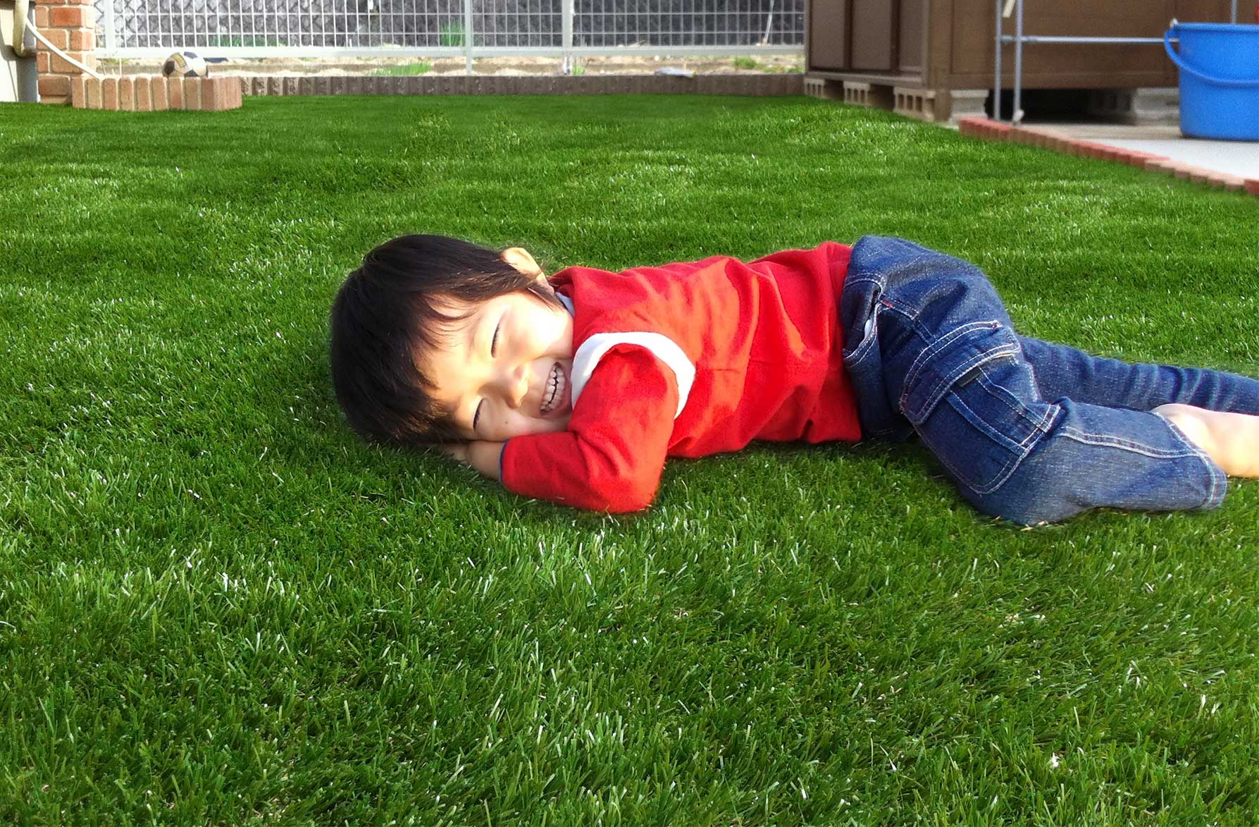 柔らかで気持ちよい触り心地の人工芝で、お庭がもっと楽しくなる。